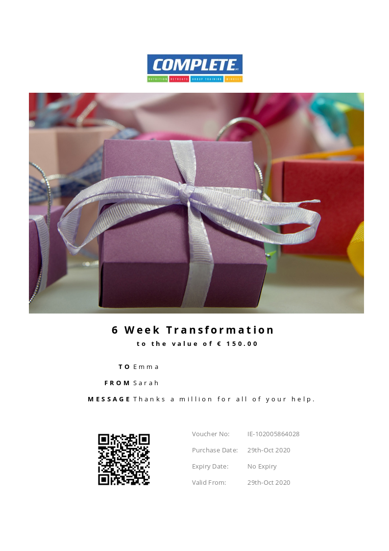 Give the gift of health and fitness. This voucher entitles the bearer to 5 x one to one, personal training sessions in our studio
